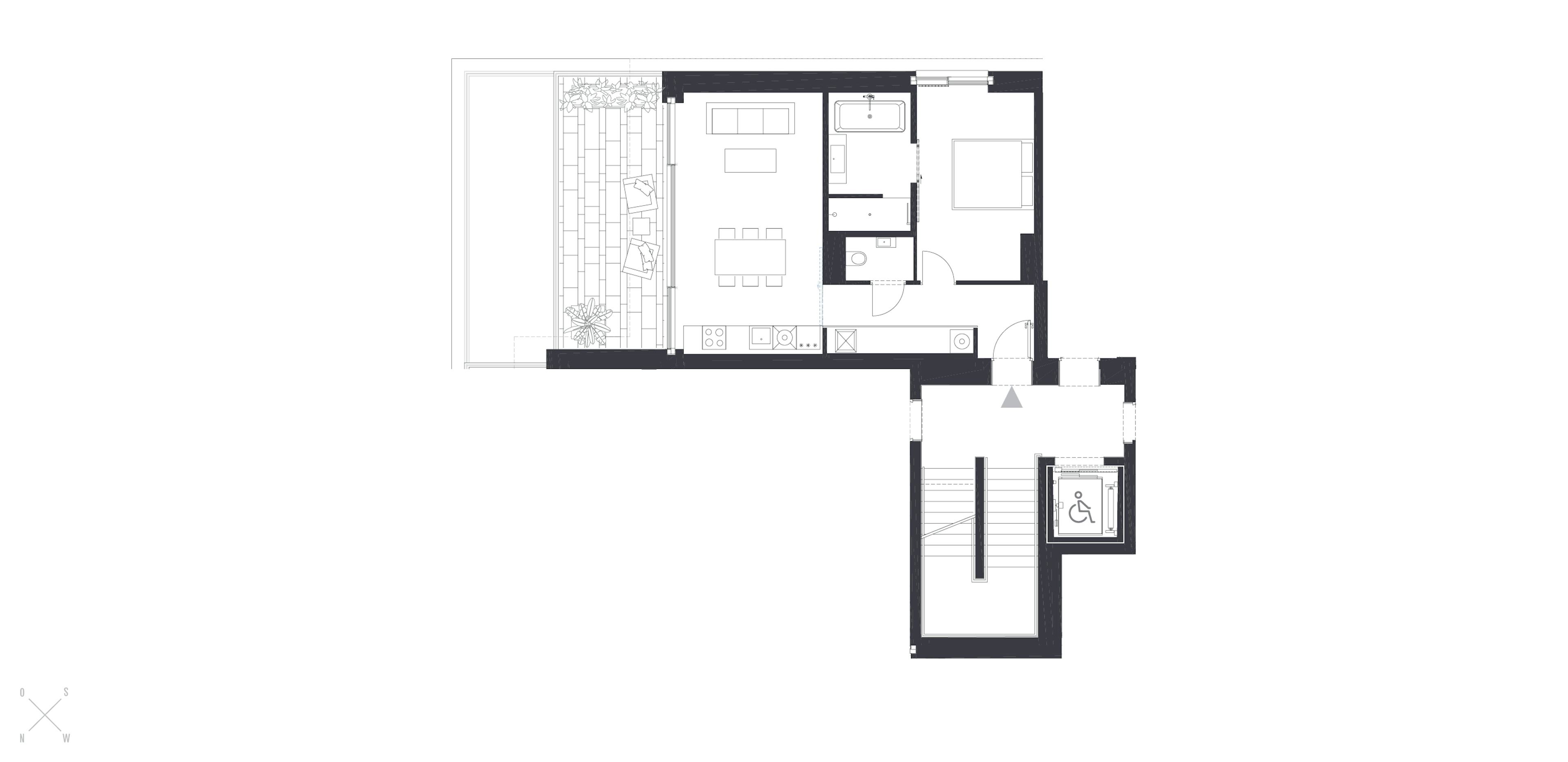 Luxus fürs Herz bietet dieses 2 Zimmer Apartment mit einer Wohnfläche von 57,97 m². Die offene Grundrissgestaltung vermittelt ein Gefühl von Leichtigkeit, während die weitläufige Terrasse dem Apartment seinen Charme verleiht. Durch große Glasfronten bahnt sich das Licht seinen Weg auch in die Innenräume und bringt die Bewohner auf erhellende Gedanken. Der Titel „At the Heart“ haltet das was er verspricht – Liebe auf den ersten Blick.