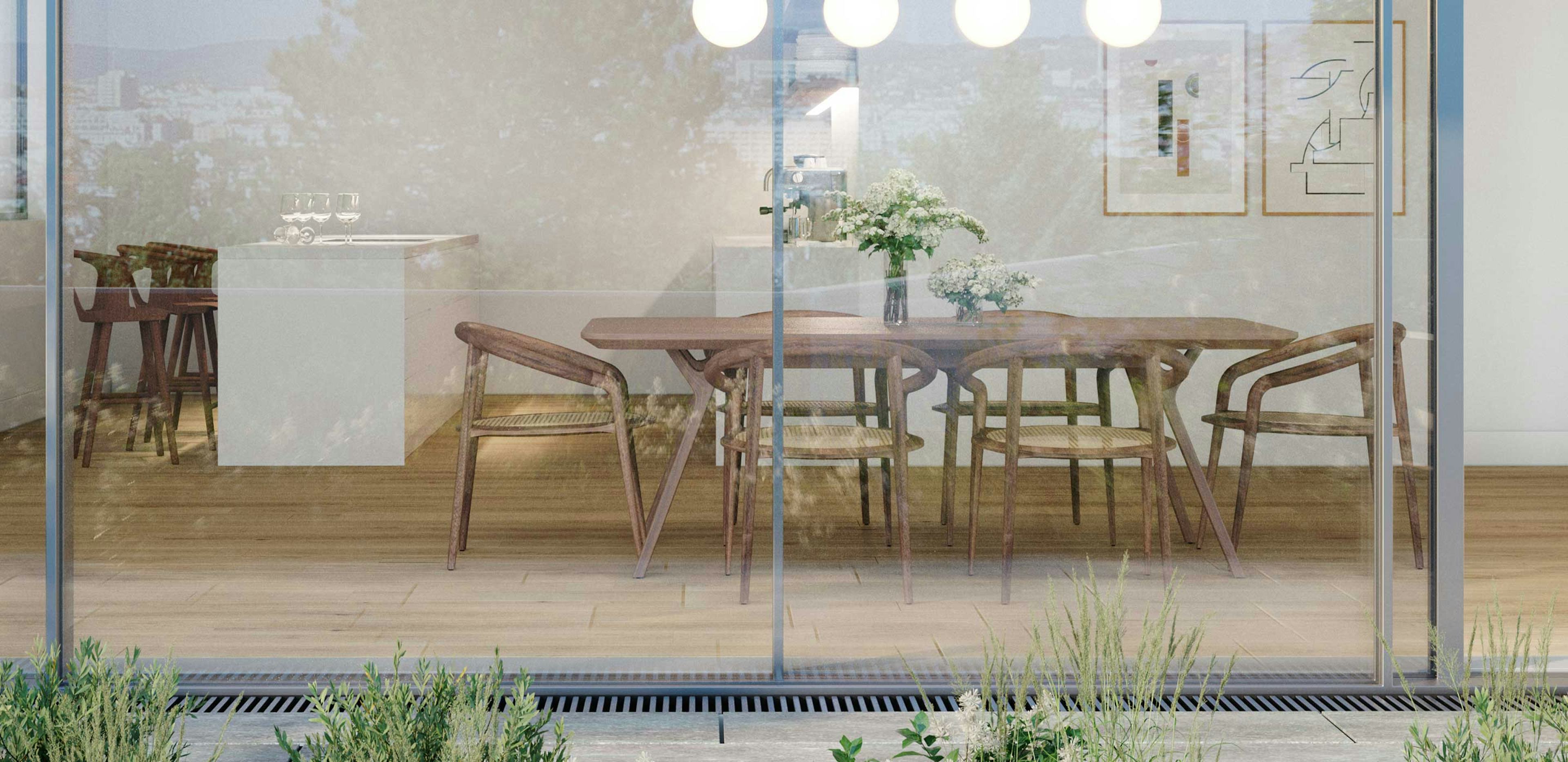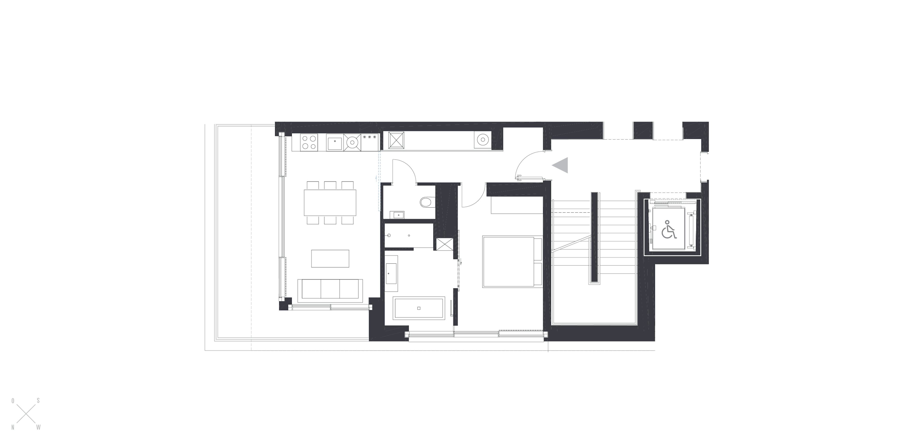 Mit einer Wohnfläche von 53,72 m² überzeugt dieses 2 Apartment durch eine offene Grundrissgestaltung. Durch die großen Glasfronten bahnt sich das Licht seinen Weg in die Innenräume und bringt somit die Bewohner auf erhellende Gedanken. Unter dem Titel „At the Heart“ bietet dieses Apartment Luxus fürs Herz.