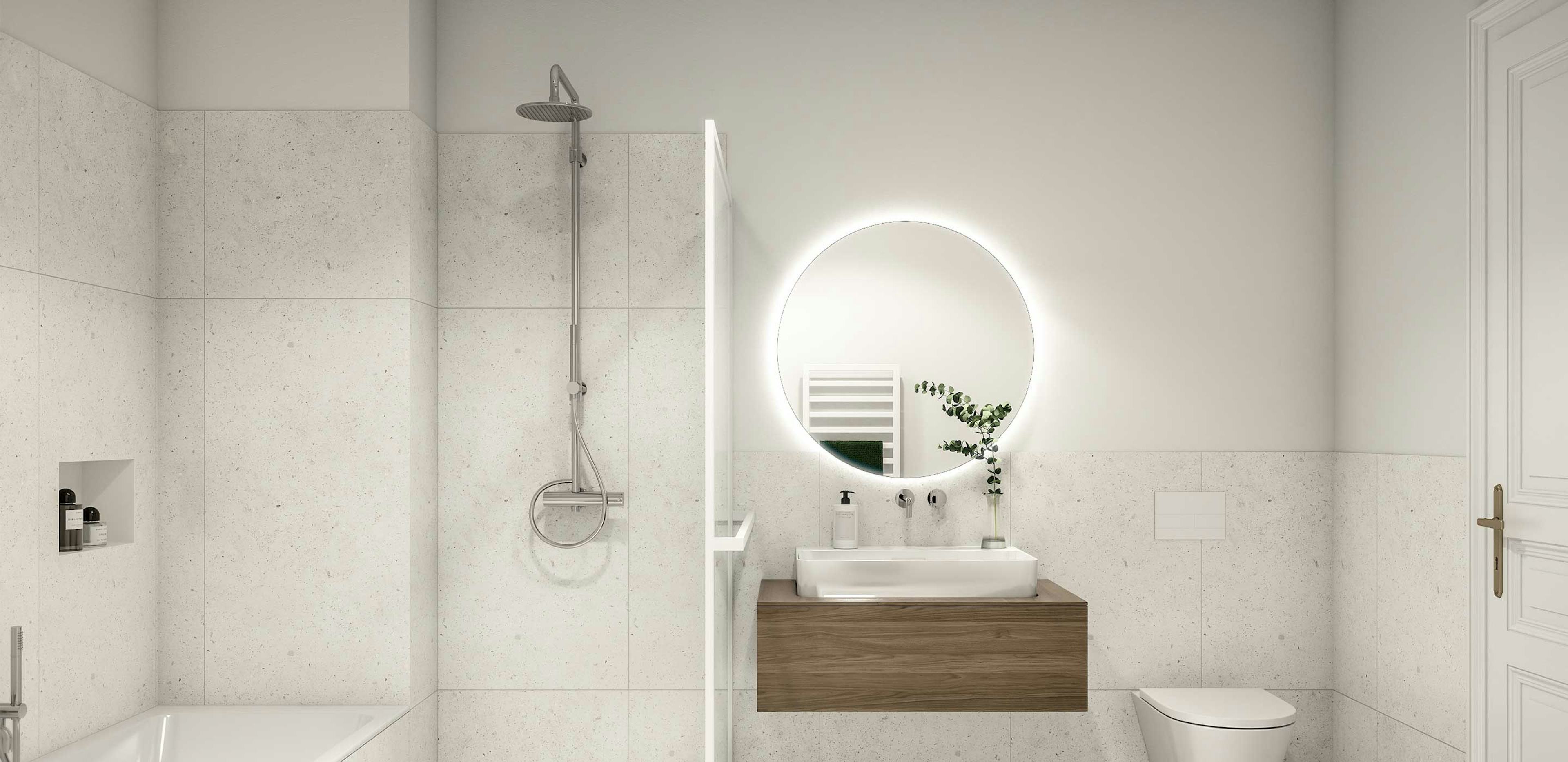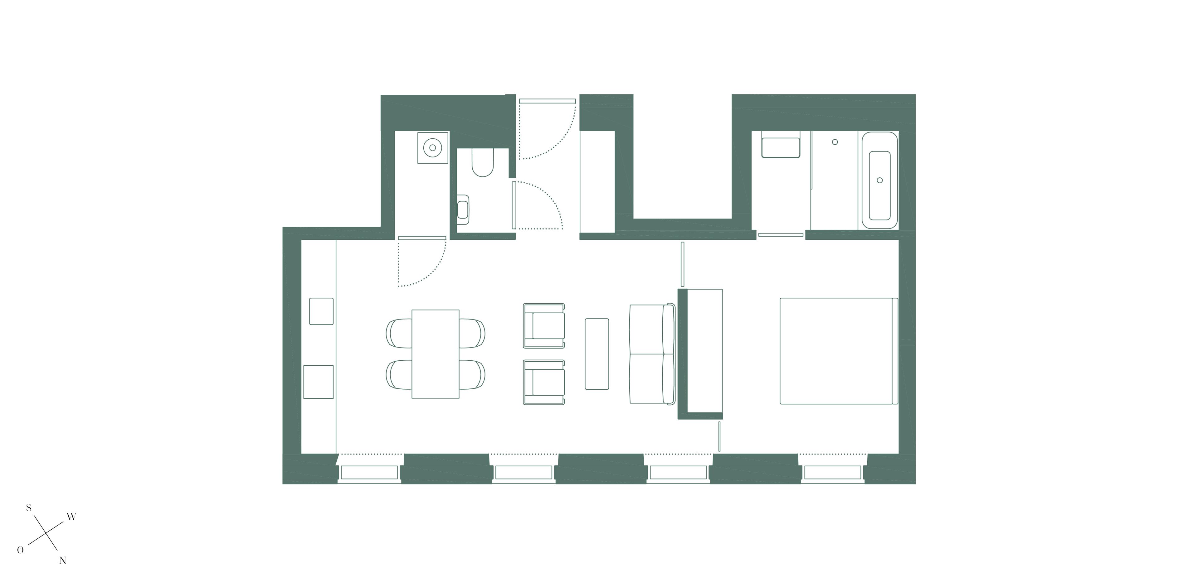Dieses Apartment besticht mit 48,40 m² und einer weitläufigen Raumeinteilung. Das Schlafzimmer mit En-Suite Badezimmer besticht durch weitere Fenster, die den Raum erhellen.