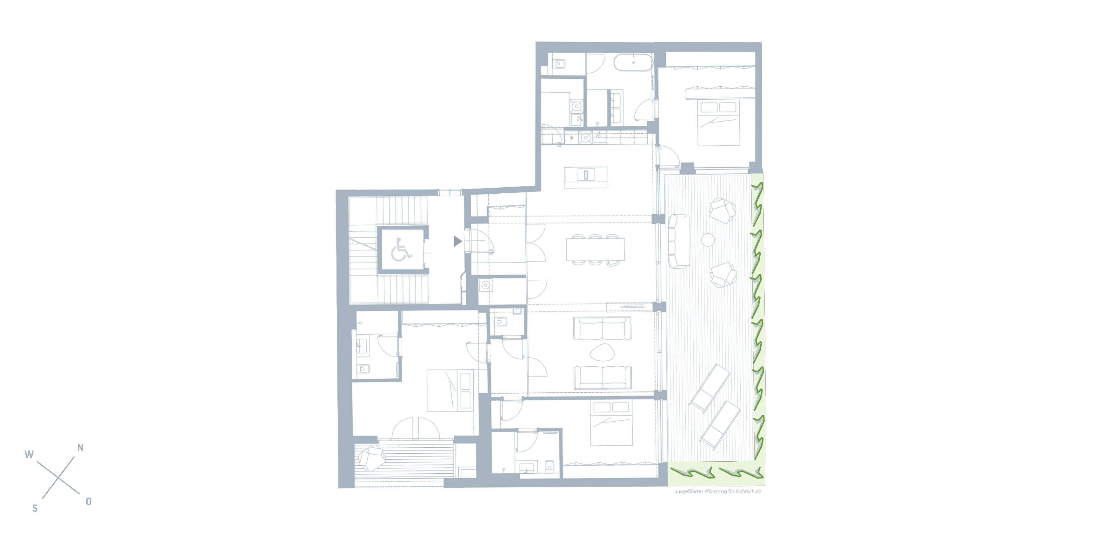 „The Loft I“ bietet dank seinem offenen Grundriss viel Platz für die ganze Familie. Die riesige Gartenterrasse im idyllischen Innenhof lädt zu gemütlichen Sommertagen und sonnigen Abenden ein. Die drei großzügigen Schlafzimmer weisen allesamt En-Suite-Badezimmer vor. Das Familienleben findet sich im weitläufigen Wohn-Ess-Bereich und der lichtdurchfluteten offenen Wohnküche wieder. Die private Loggia des Primary-Schlafzimmer eignet sich ideal für entspannende Zeit zu zweit.