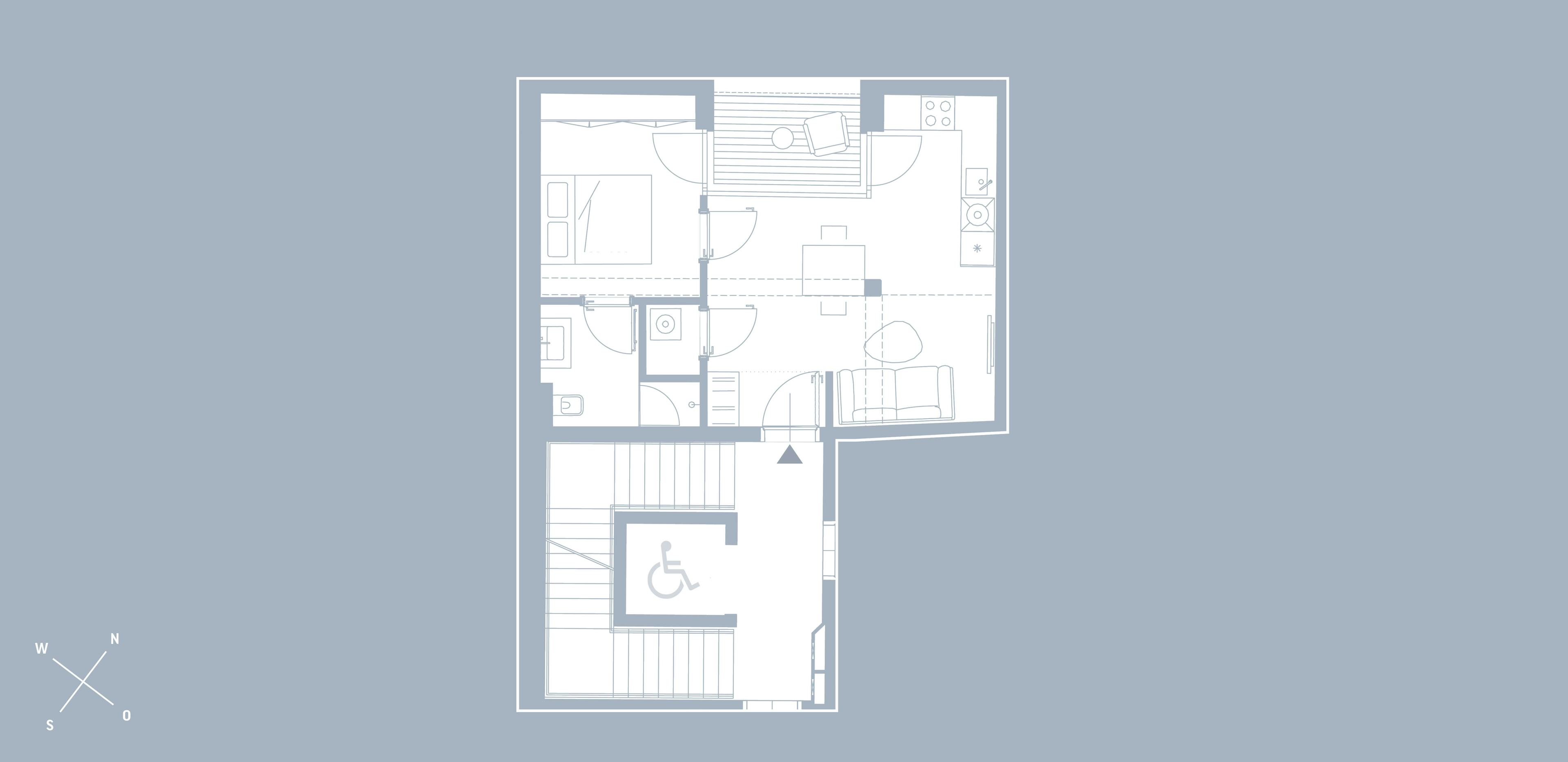 „Henry“ bietet auf ca. 41 m² Wohnfläche ein ideales Zuhause für Singles und Pärchen. Der offene Wohn-Ess-Bereich lädt zu gemeinsamen Abenden mit Freunden oder zum Relaxen ein. Die in den ruhigen Innenhof ausgerichtete Loggia schenkt zusätzlich Erholung und eine ganz private Ruhe Oase mitten in der Stadt.