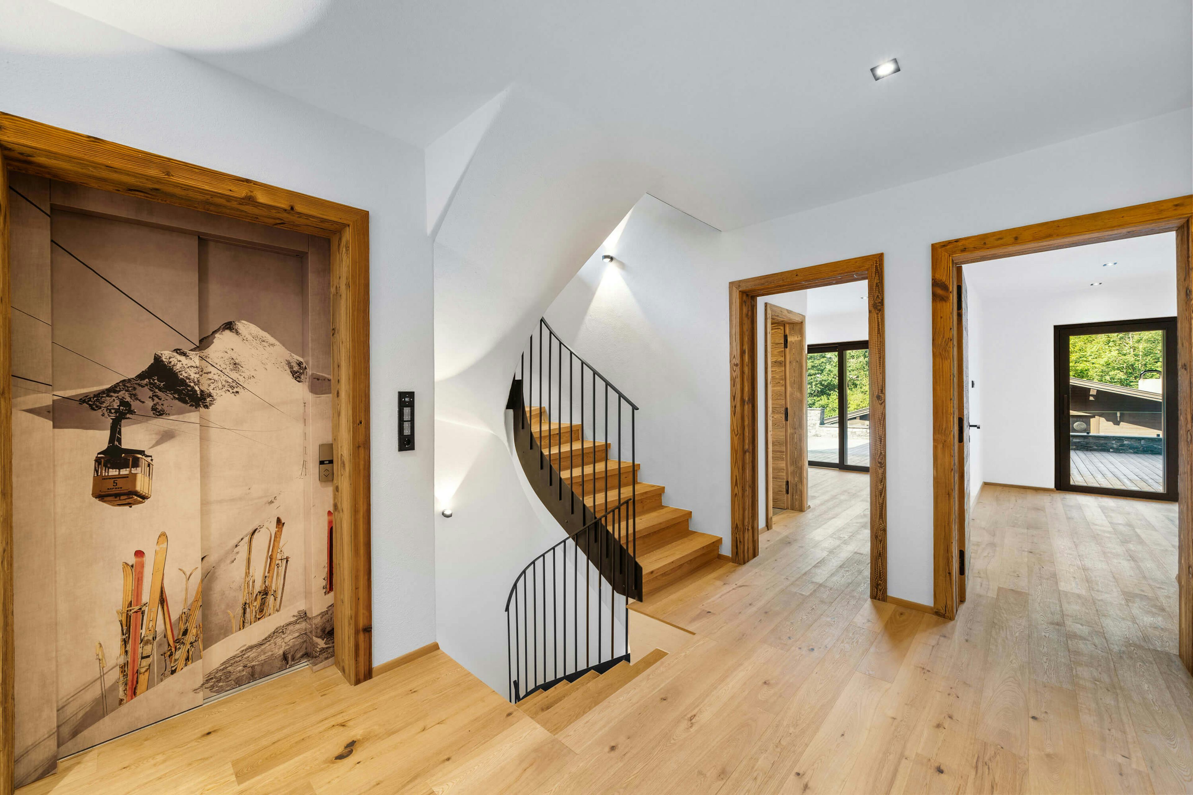 • Schöne Ausblicke in die Tiroler Bergwelt und auf den Wilden Kaiser • Wellnessbereich mit Altholzsauna und Fitness-/Relaxzone • Altholz, Naturstein und bodentiefe Fensterfronten • Exklusive en suite Bäder mit edlen Armaturen • BUS-System und elektrische Raffstores • Großzügige Terrassen und pflegeleichter Garten • Profiküche mit Geräten von Gaggenau und Bora