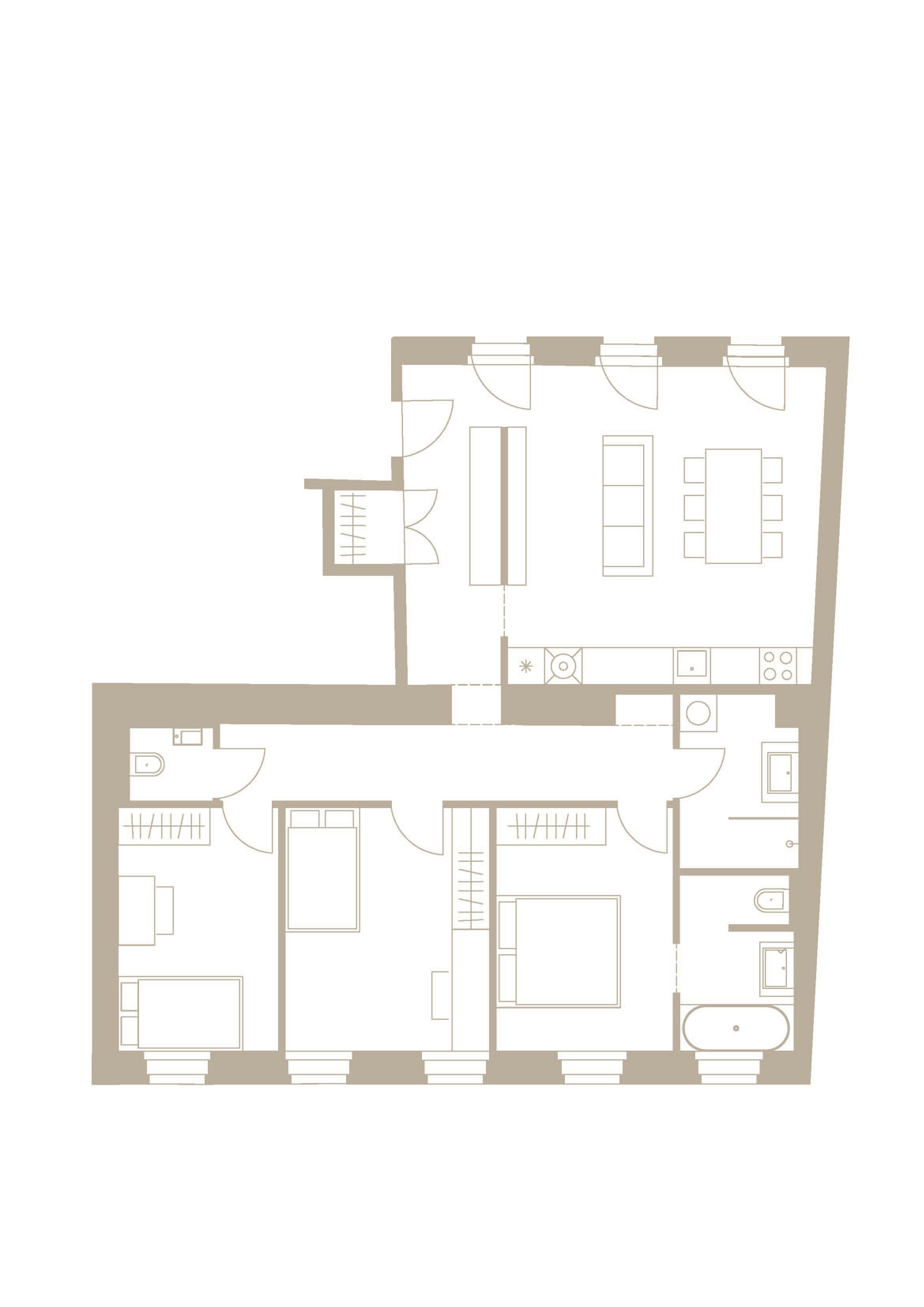 Das stilvolle Apartment beeindruckt durch seine durchdachte Raumaufteilung und hochwertige Ausstattung. Beim Betreten gelangen Sie in einen eleganten Vorraum mit integrierter Garderobe. Die lichtdurchflutete Wohnküche bietet einen einladenden Raum, der zum Verweilen einlädt. Das Hauptschlafzimmer verfügt über ein stilvolles en-suite Bad, das höchsten Komfort verspricht. Zwei weitere geräumige Schlafzimmer bieten vielseitige Nutzungsmöglichkeiten. Ein zusätzliches, modern gestaltetes Badezimmer sowie ein drittes, separates WC im Flur sorgen für zusätzlichen Komfort und Bequemlichkeit.