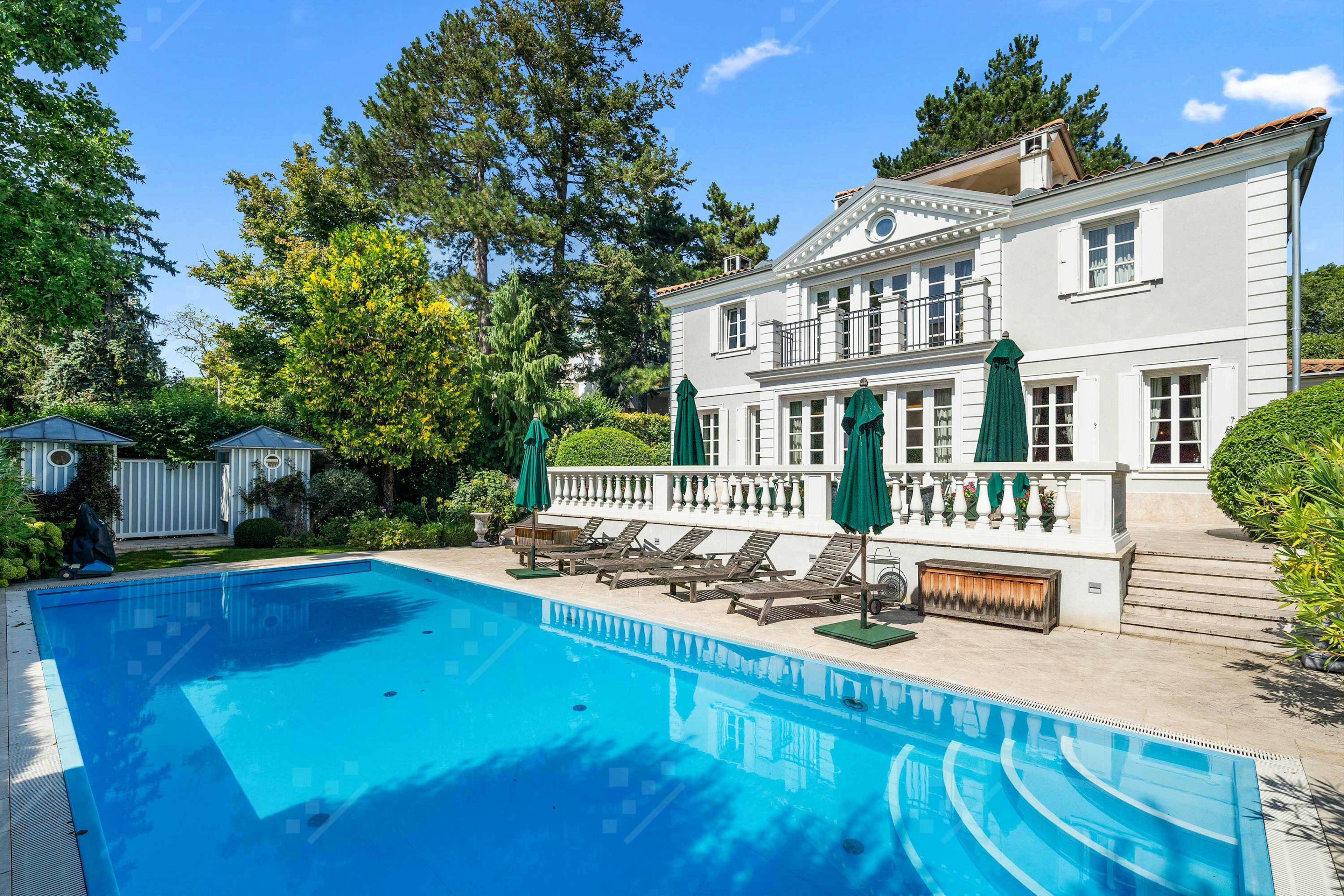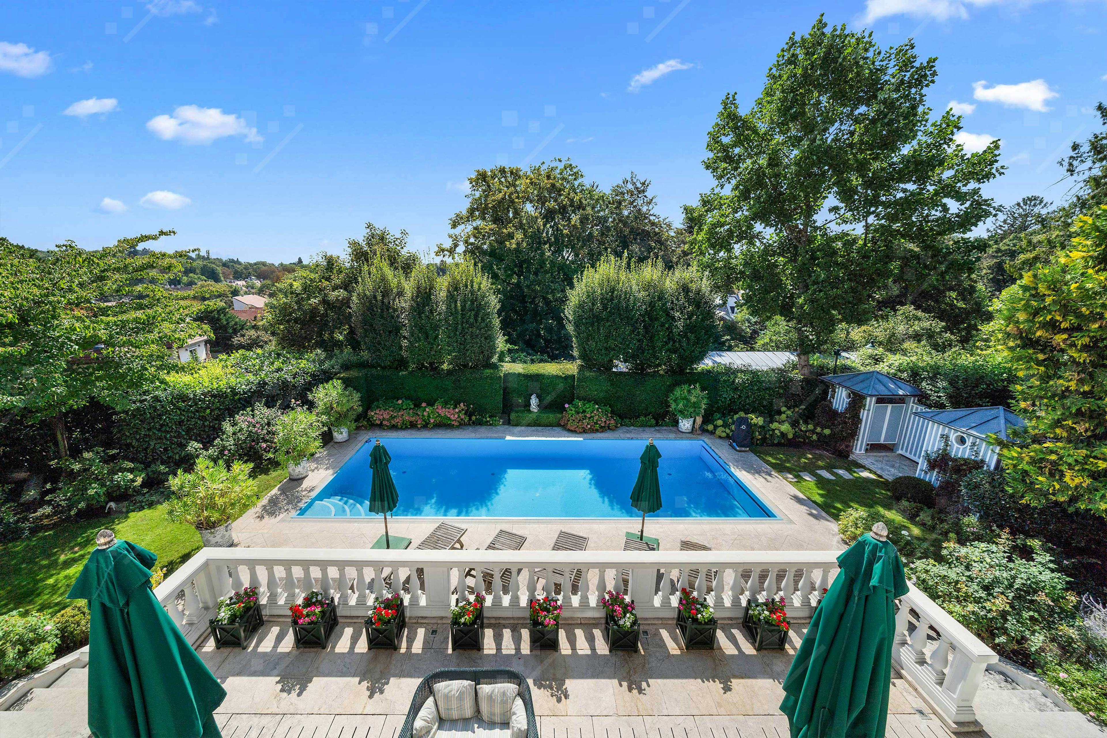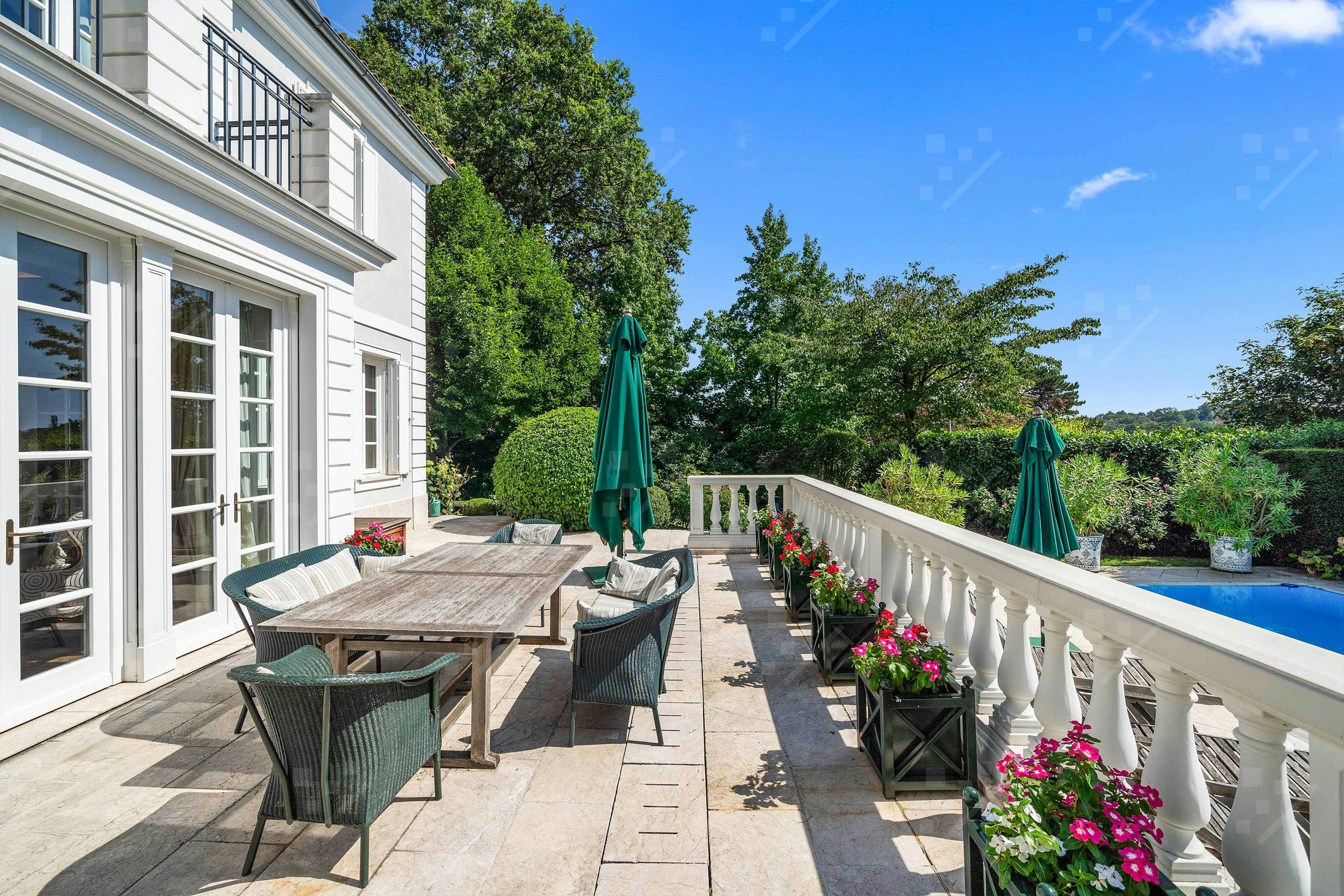 • Zeitlose architektonische Eleganz im klassizistischen Stil • Gärtnerisch aufwändig gestaltetes Grundstück mit ca. 1.450qm • Totale Privatsphäre bei gleichzeitig bester Infrastruktur • Weinkeller, Pool mit Poolhaus, Wellnessbereich • 9 Zimmer (davon 5 Schlafzimmer), 4 Bäder & Tiefgarage mit ca. 4 Stellplätzen