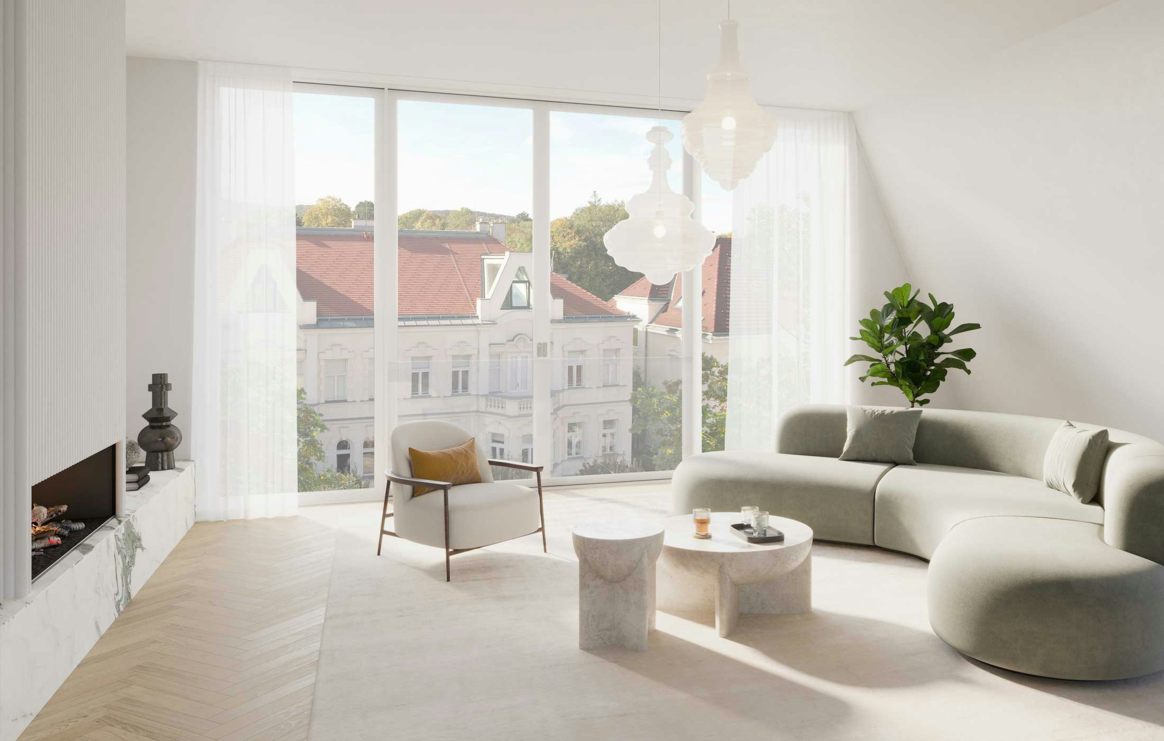 Die Villa Valerie verbindet die historische Substanz des Gebäudes mit einer nachhaltigen Sanierung und moderner Funktionalität. Altbau-Elemente wie Kastenfenster und Alt-Wiener Türen stehen in spannendem Kontrast zu den klaren Linien eines Neubaus, exklusiven Marken und barrierefreier Technik wie dem integrierten Lift. Der Clash aus Alt-Wien und Neubau schafft eine einzigartige Spannung, bei der die Architektur eine Geschichte erzählt, in der Tradition und zeitgenössischer Wohnkomfort in perfekter Balance stehen.